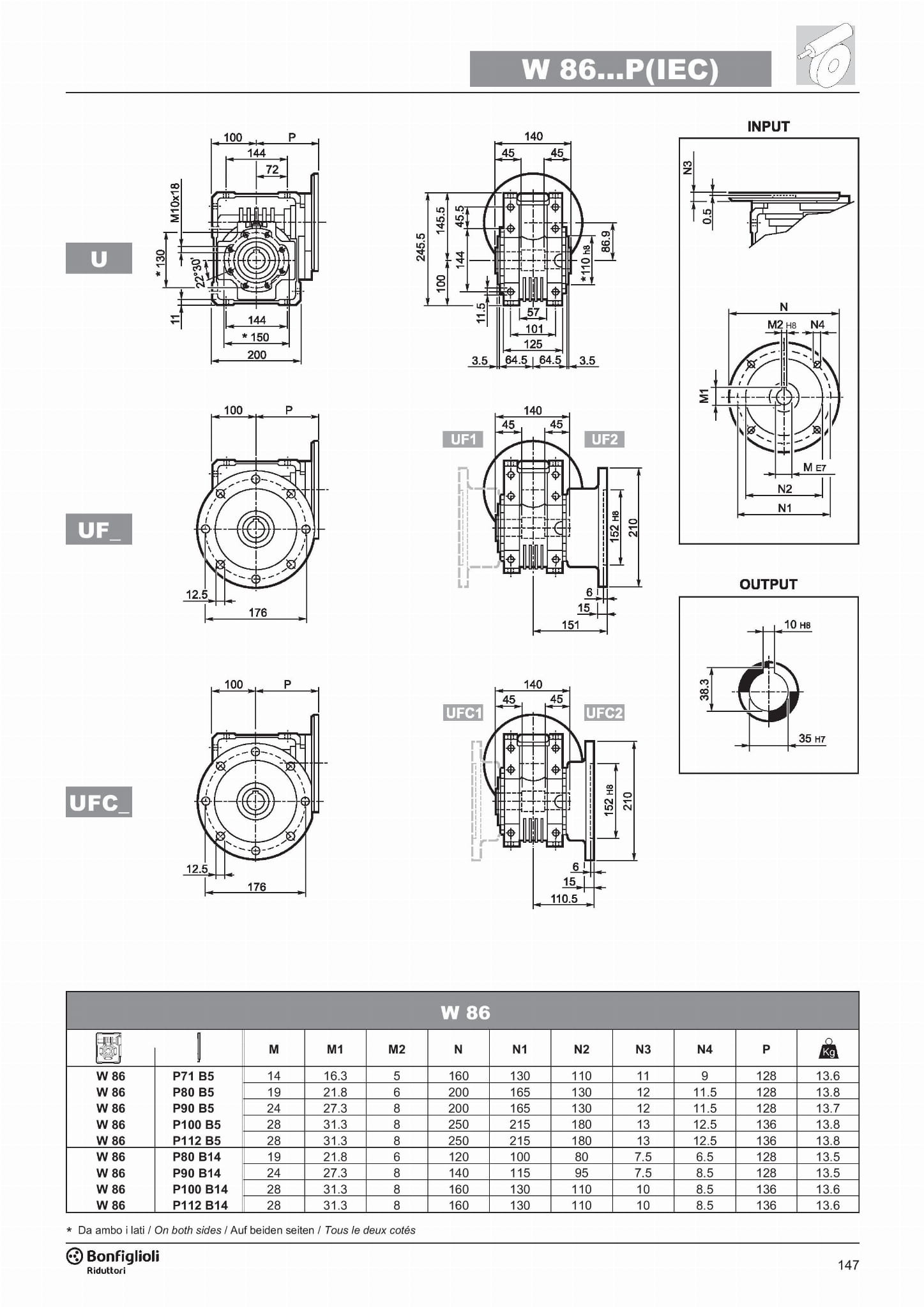 Reduktor W86 U i=56 P71 B5, Bonfiglioli